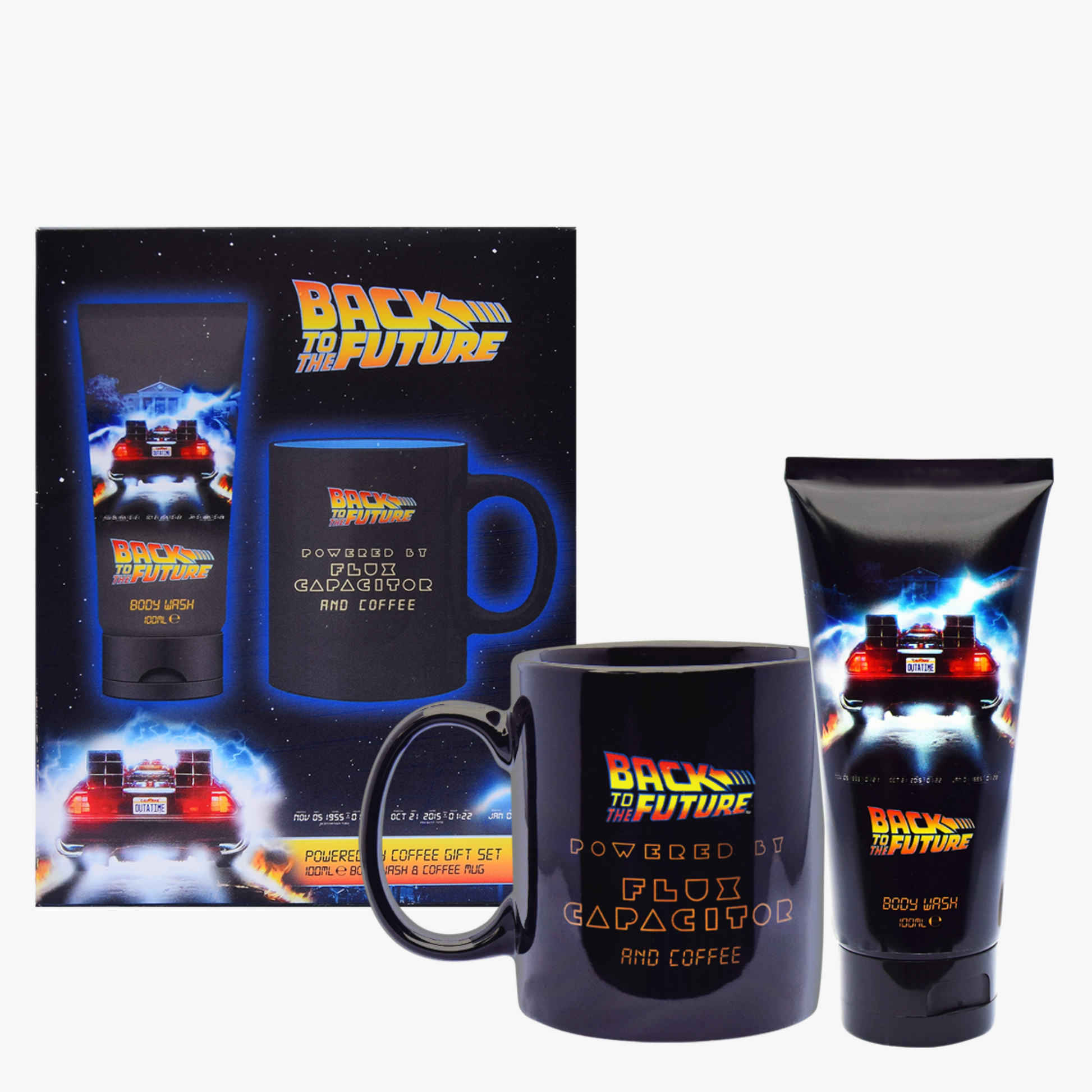 The Back to the Future Gift Set is a must-have for fans of the iconic movie franchise. This set includes a 100ml bottle of body wash & a stylish, Back to the Future themed mug. Whether you're a collector or simply a fan of the movies, this gift set adds a nostalgic touch to your morning routine and makes an excellent gift for Back to the Future enthusiasts.