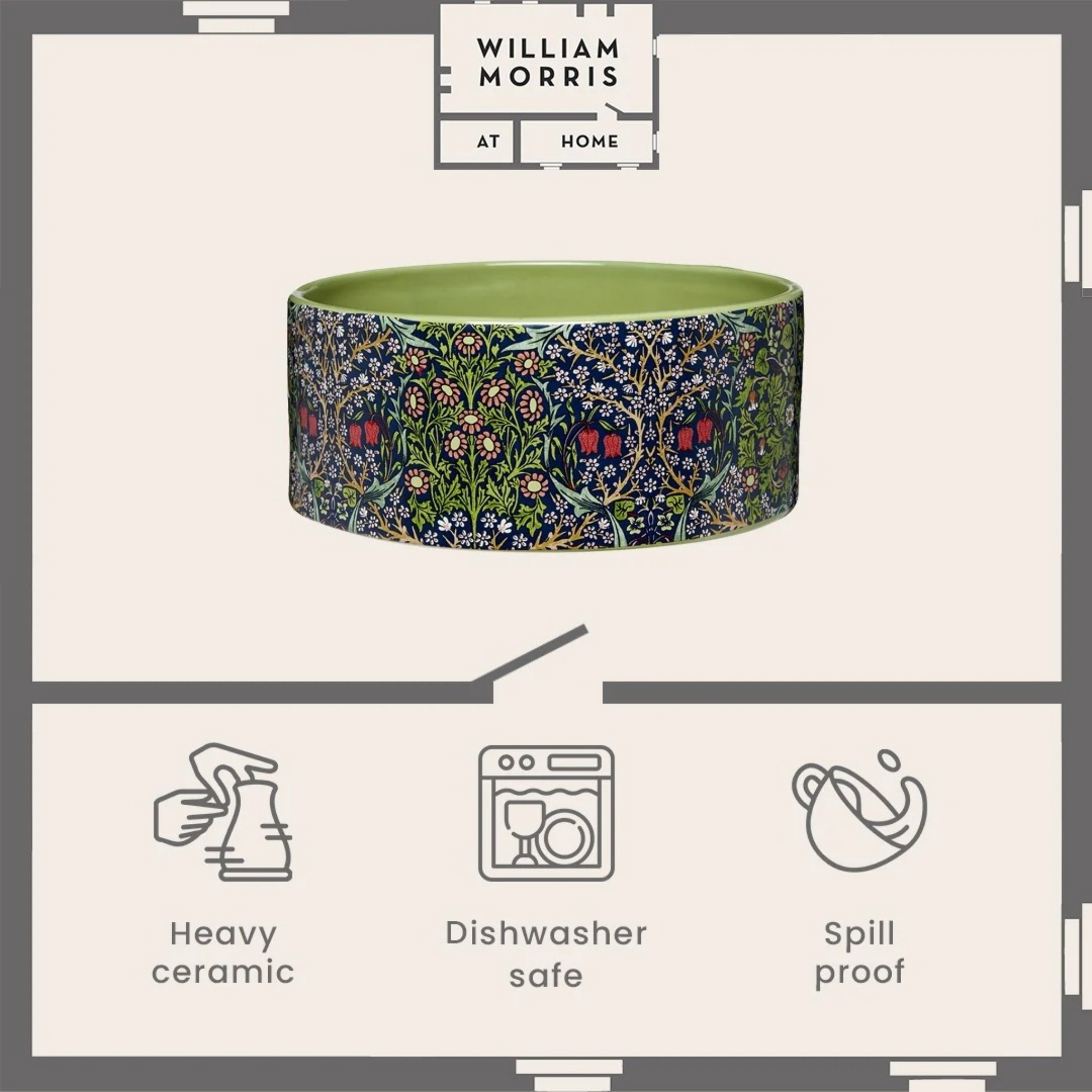 This smart ceramic dog bowl featuring the William Morris Blackthorn print will both satisfy your pooch’s dining requirements and add heritage style to the home. Crafted from fine yet weighty ceramic to help prevent spilling or tipping.