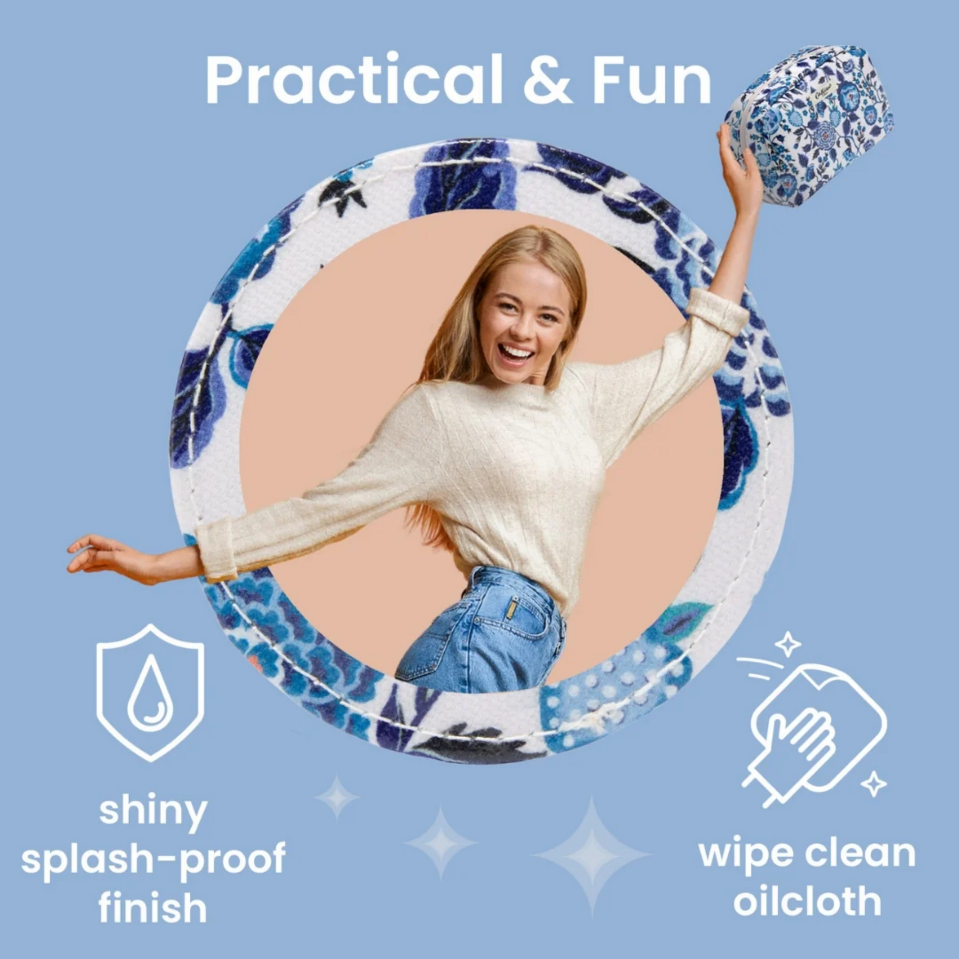 If looking to upgrade your overnight beauty bag this neat, zippered cosmetic bag in the cheering Carnation print is ideal for storing your beauty essentials in style. Perfect for a night away or gym bag this cosmetic bag is the ideal size for smaller beauty items and sits neatly on a dressing table.